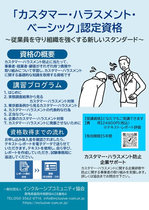 カスタマー・ハラスメント・ベーシック資格チラシ