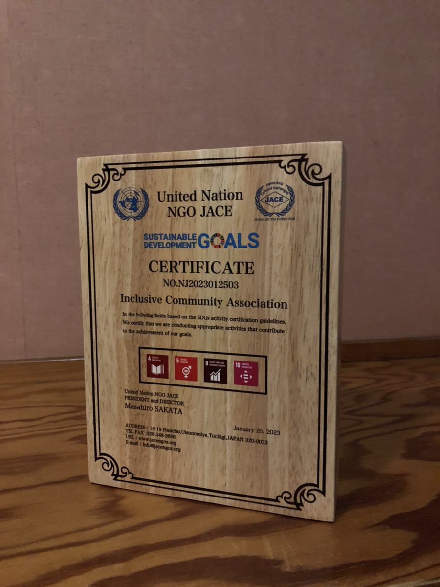 当団体は、国連NGO JACEの認証する「SDGs活動認証(4)(5)(10)」を取得しております。