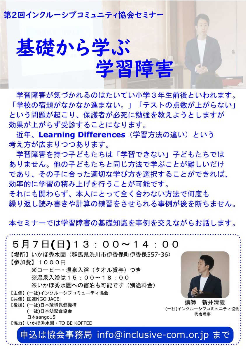 第2回インクルーシブコミュニティ協会セミナー「基礎から学ぶ学習障害」